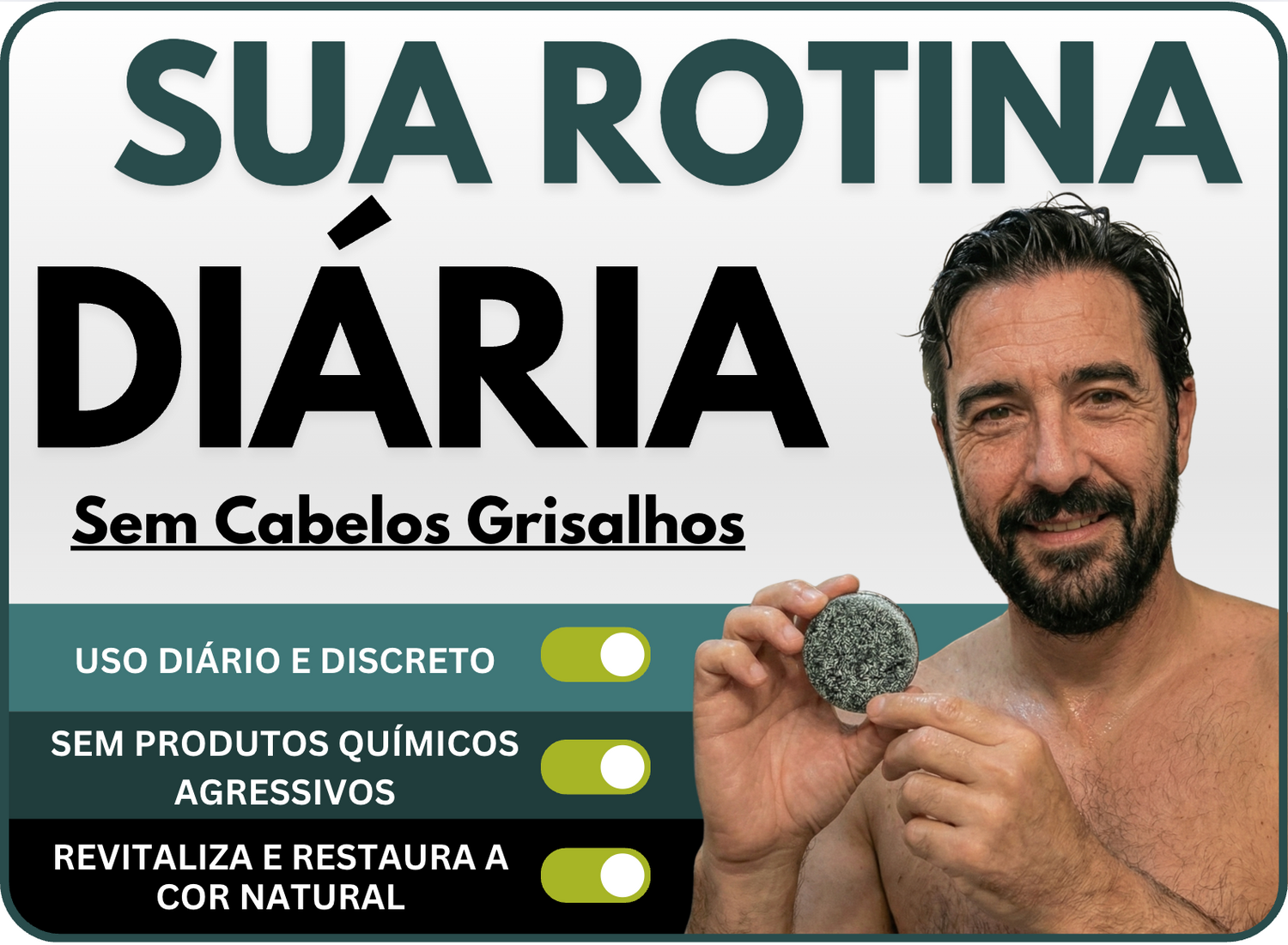 «Ver-me ao espelho com tantos cabelos brancos deixava-me desanimado. Pensava que era parte da idade, mas com este sabonete percebi que existe uma forma natural de recuperar a cor sem ter de me esconder. Funciona mesmo. Só é preciso ser constante, mas o meu cabelo agradece muito.»